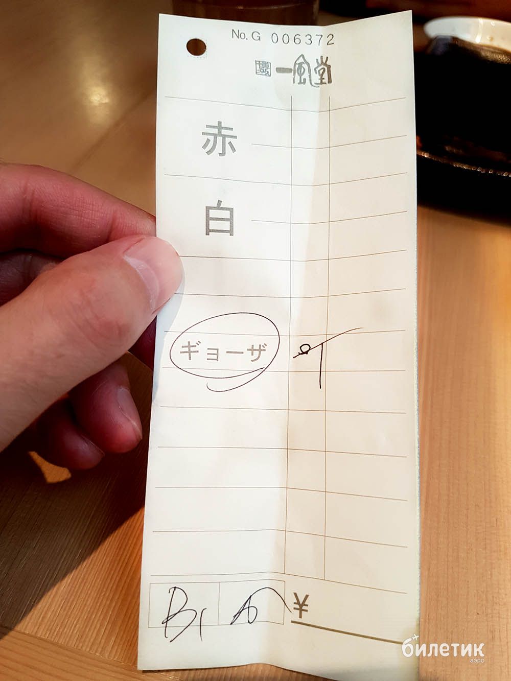 Кстати, стоит быть готовым к тому, что чек вам выпишут примерно такой, как на фото ниже. То есть, это далеко не правило, но прецеденты бывали. Японцам, вероятно, там все понятно. Но мы только почесали затылки, да и пошли себе с богом.