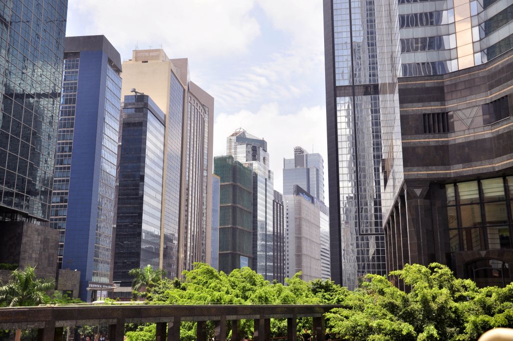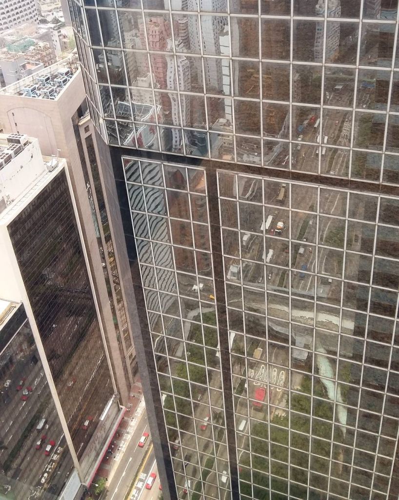 В центральной части Гонконга практически все небоскребы облицованы тонированным стеклом. Очень похоже на Москву-сити, только это не небольшой пятачок, а целые улицы.