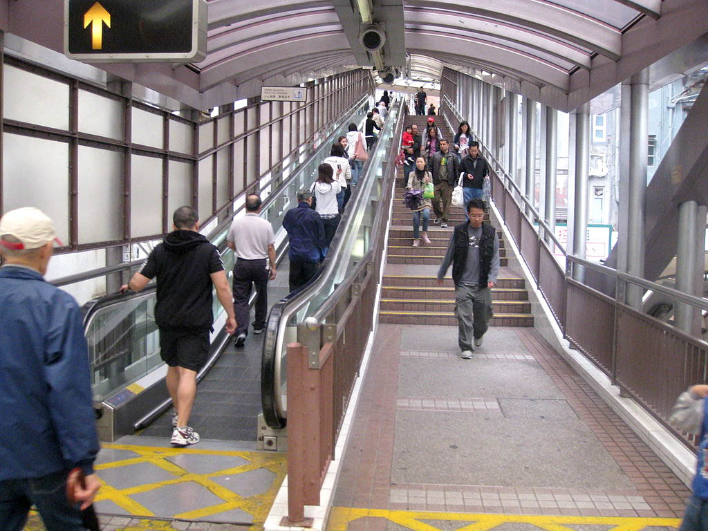 По сути, это комбинация из нескольких траволаторов, эскалаторов и переходов между ними. Вся цепочка, длина которой — 800 м, а перепад высот — 135 м, начинается на улице Des Voeux Road примерно посередине между станциями метро Central и Sheung Wan.