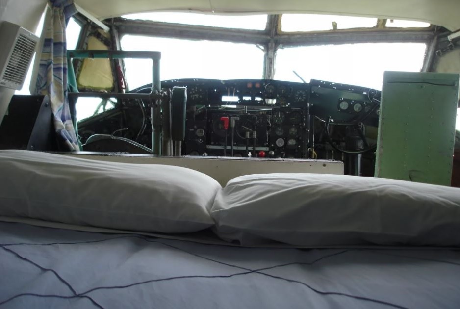 В гостиничном комплексе «Вудлин-Парк» в Новой Зеландии можно переночевать на борту грузового самолета Bristol Freighter. Внутри машины времен Второй мировой войны кокпит и хвост разделяет перегородка. В первом находится спальня, во втором — кухня и туалет. Сохранены в оригинальном виде некоторые части самолета — например, цвет обшивки снаружи, приборная доска и штурвалы внутри. Провести ночь в такой гостинице стоит около 200 долларов в сутки. Если надоест жить в самолете, можно перебраться в расположенные рядом отель-судно или дом хоббита.