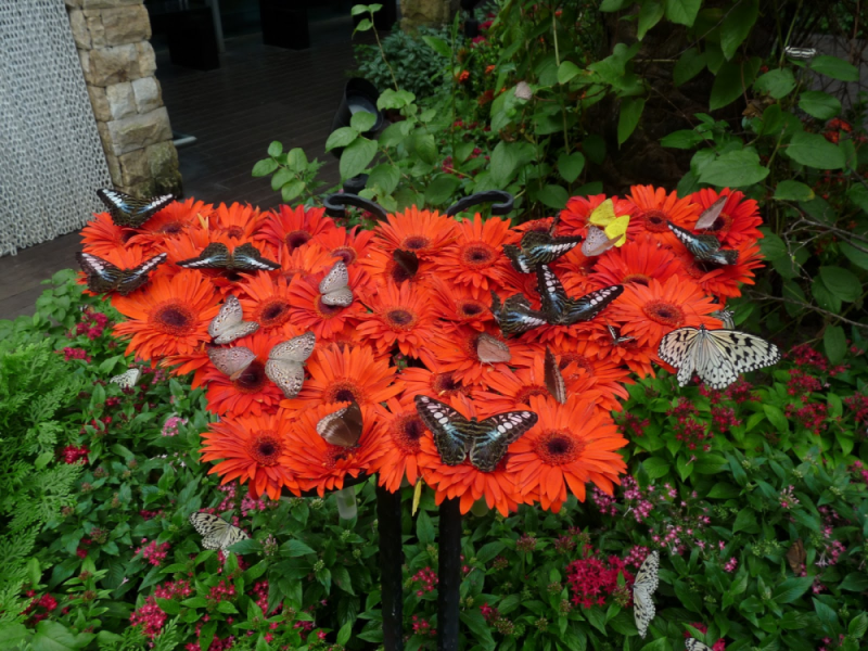 В одном из терминалов аэропорта Чанги есть благоухающий сад, в котором порхают сотни разноцветных бабочек.