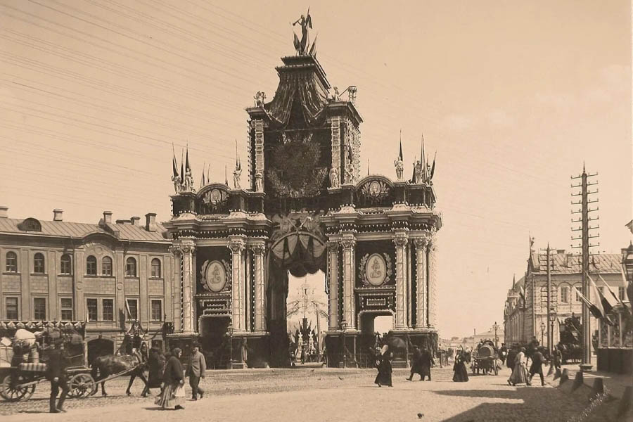 В XIX веке внешний вид ворот постоянно менялся. В 1825 году, накануне коронации Николая I, портрет Елизаветы Петровны над главным пролётом Триумфальной арки заменили изображением двуглавого орла. Строение обновили и заменили фигуру трубящего агнца.