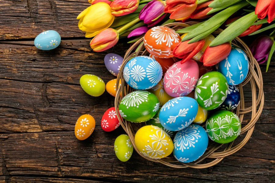 Центральное место на праздничном столе занимают крашеные яйца. Их варят до готовности, а затем обрабатывают пищевыми красителями природного или искусственного происхождения, украшают рисунками и узорами. По традиции яйца должны быть окрашены в красный цвет, но в наши дни всё чаще встречаются разноцветные яйца.