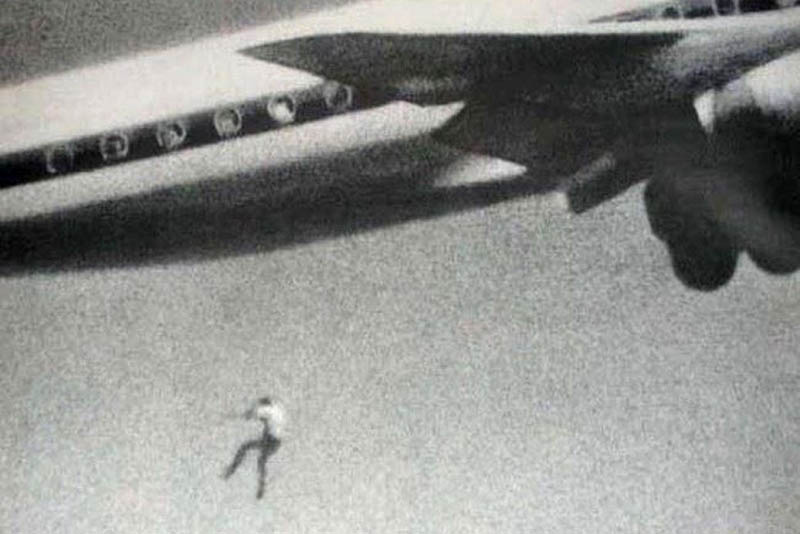 В кадр попал 14-летний юноша Кит Сапсфорд. Он залез в отсек для шасси самолёта, чтобы совершить нелегальный перелёт в Японию. Но во время взлёта парень не удержался, упал на землю с 60-метровой высоты и разбился насмерть.Опасный трюк