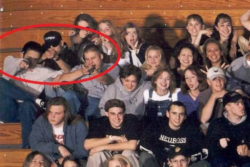На групповом фото, сделанном в 1999 году в американской средней школе «Колумбайн», никто не заметил двух парней, которые делают вид, будто стреляют в фотокамеру.