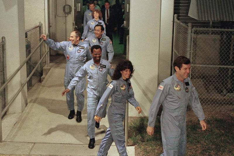 Посмотрите на следующий снимок. Он был сделан в 1986 году. Улыбающиеся люди на фото — члены экипажа шаттла «Челленджер». Они идут на борт корабля, приветствуя кого-то по дороге.