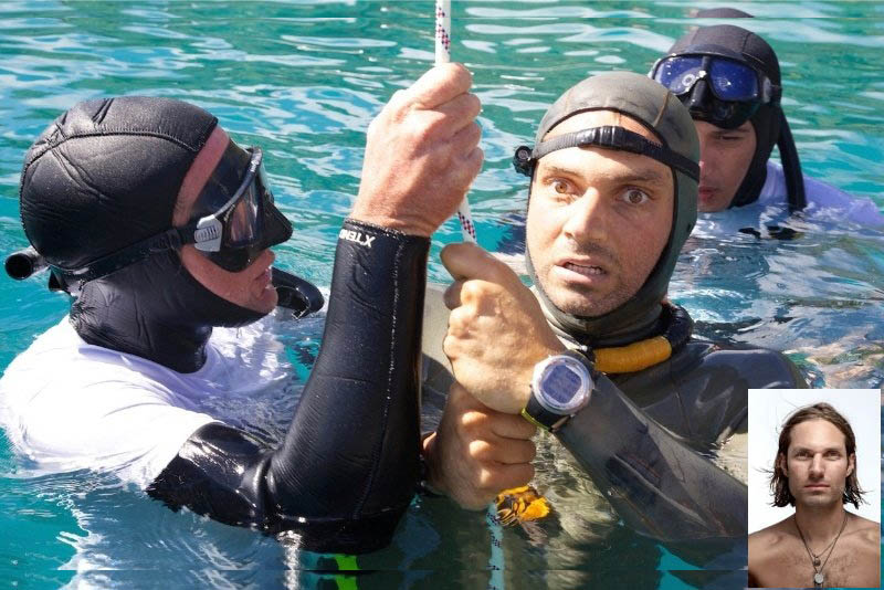 Фридайвинг — это модное увлечение, которое ассоциируется с яркими красками и красотой подводного мира. Но некоторым фридайверам это увлечение стоило жизни. На следующем фото — Николас Меволи. Он только что вернулся на поверхность после погружения на глубину 70 метров. Поднявшись, мужчина показал жестами, что у него всё в порядке.