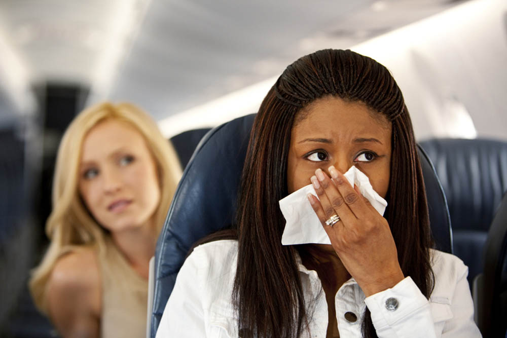 Бледное лицо, красные глаза и нос, слезотечение, отдышка ˗ всё это признаки болезни, которые член экипажа обязательно должен заметить. Таким пассажирам нужно уделять особое внимание, так как им в любой момент может понадобиться помощь. Особенно это актуально в период эпидемии: болеющих людей нужно разместить в салоне так, чтобы была соблюдена дистанция со здоровыми.