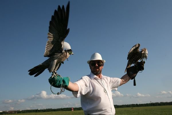 Итак, соколиный охотник прибыл в аэропорт со своей птицей. Он захотел произвести впечатление на понравившуюся женщину и устроить маленькое представление. Снял капюшон с сокола, но не заметил одну маленькую деталь. На улице отдыхала стайка скворцов. Обученный сокол взмыл в воздух, погнался за местными пернатыми обитателями, выбил стекло и сломал себе шею.