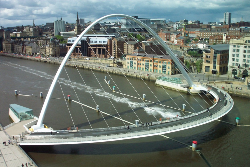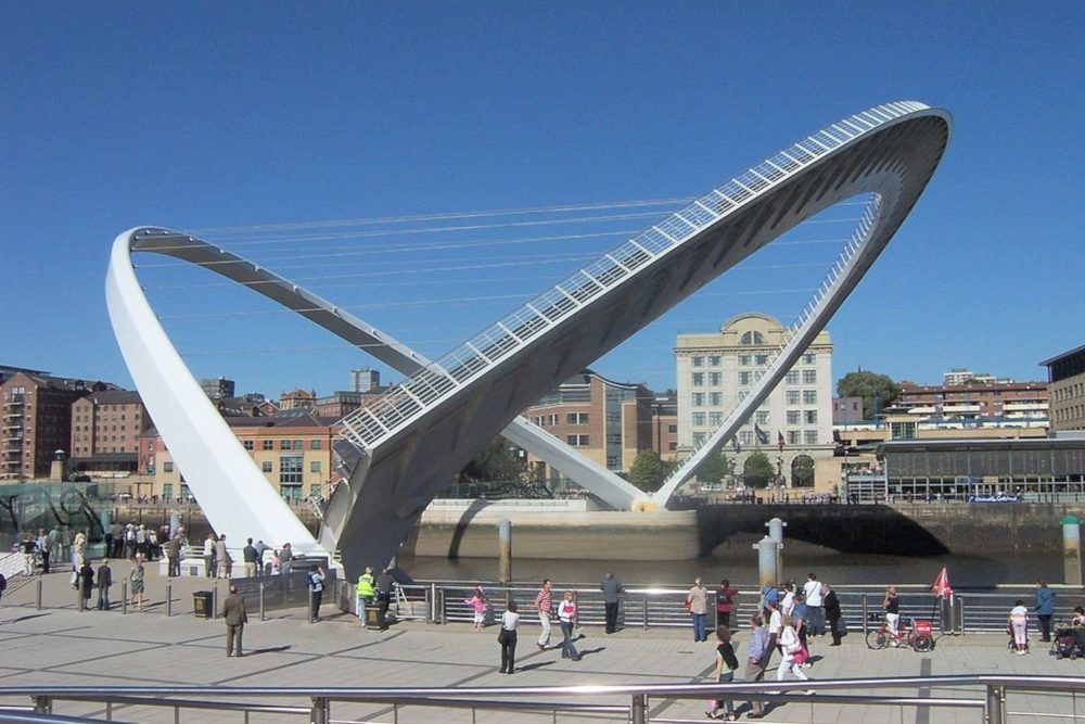 В Северной Англии есть подъёмно-поворотный мост в форме двух дуг, одна из которых лежит между берегами, а вторая поднята под углом 90 градусов. Когда к мосту приближается судно, обе арки поднимаются над водой, образуя арку высотой 25 м. Мост поднимают и опускают примерно 2000 раз в году, и каждый раз это зрелище собирает толпы зевак.