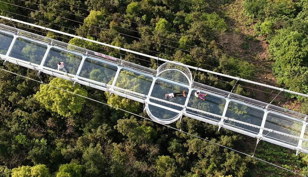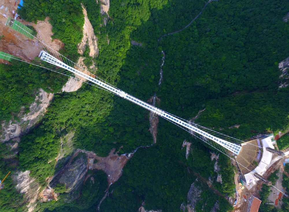 В китайской провинции Сычуань, на высоте 1880 м над уровнем моря, раскинулся стеклянный мост длиной почти в полкилометра. В его прозрачные плитки встроены экраны, на которых время от времени появляется изображение трескающегося стекла. Это зрелище настолько шокирует публику, что некоторые даже теряют сознание от страха.
