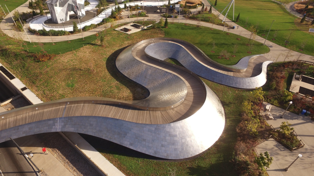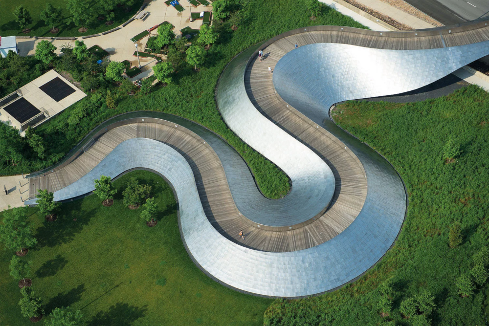 Этот пешеходный мост построен в одном из чикагских парков по проекту архитектора-авангардиста Фрэнка Гери. В аббревиатуре BP зашифровано название компании British Petroleum, которая выступила спонсором строительства. Длина моста составляет 285 м, ширина 4,4 м.