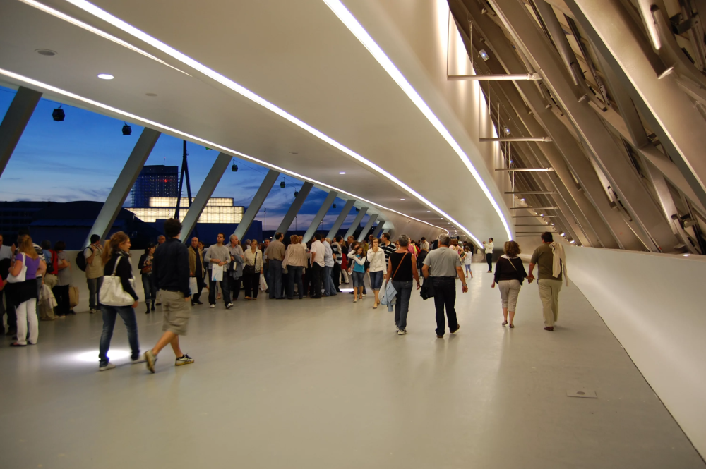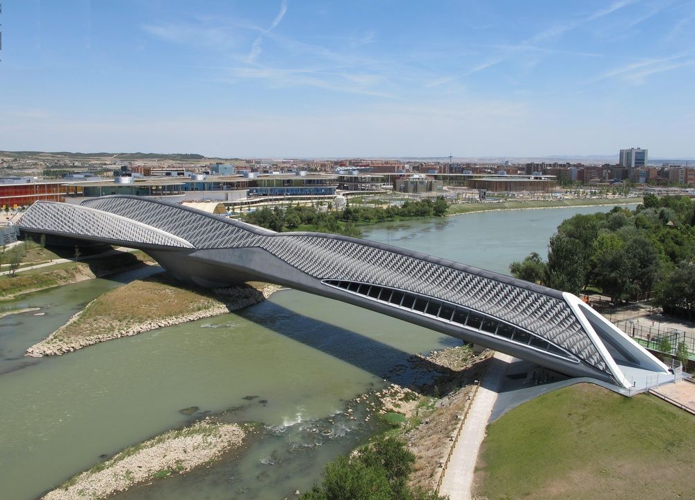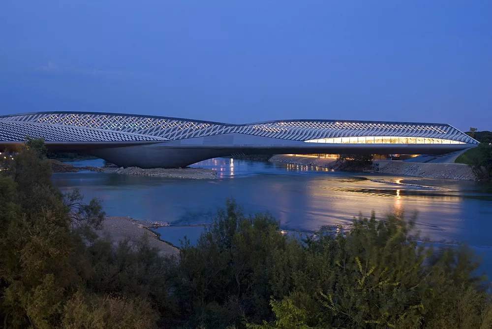 Мост Zaragoza Bridge напоминает серебристую летающую тарелку, приземлившуюся на реку. Прохожие с удовольствием делают селфи возле этой футуристической конструкции. Внутри крытого моста находятся выставки и развлекательные площадки.