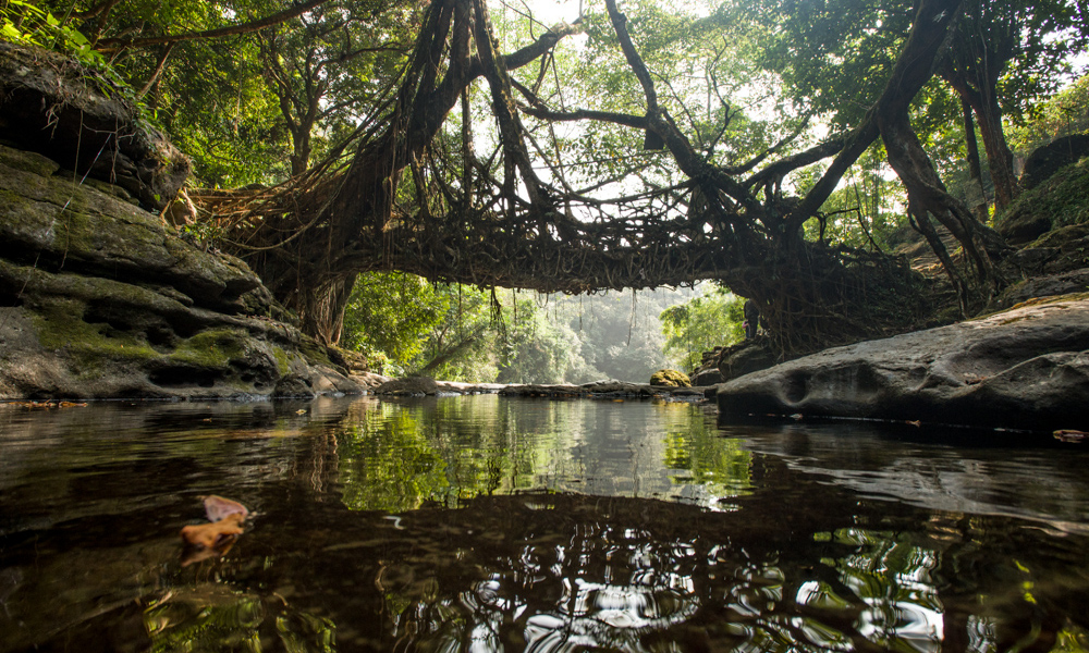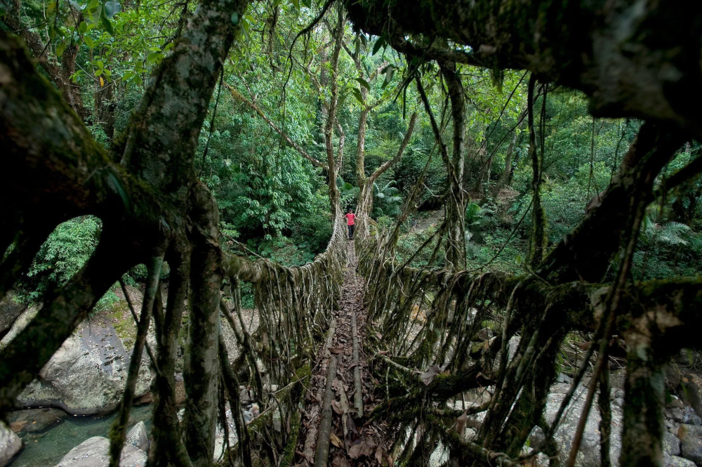 В индийских провинциях мосты не строят, а выращивают из корней каучуконосного фикуса. Готовая конструкция способна выдержать вес более 50 человек. Её несомненным преимуществом является высокая устойчивость к наводнениям, типичным для данной местности.