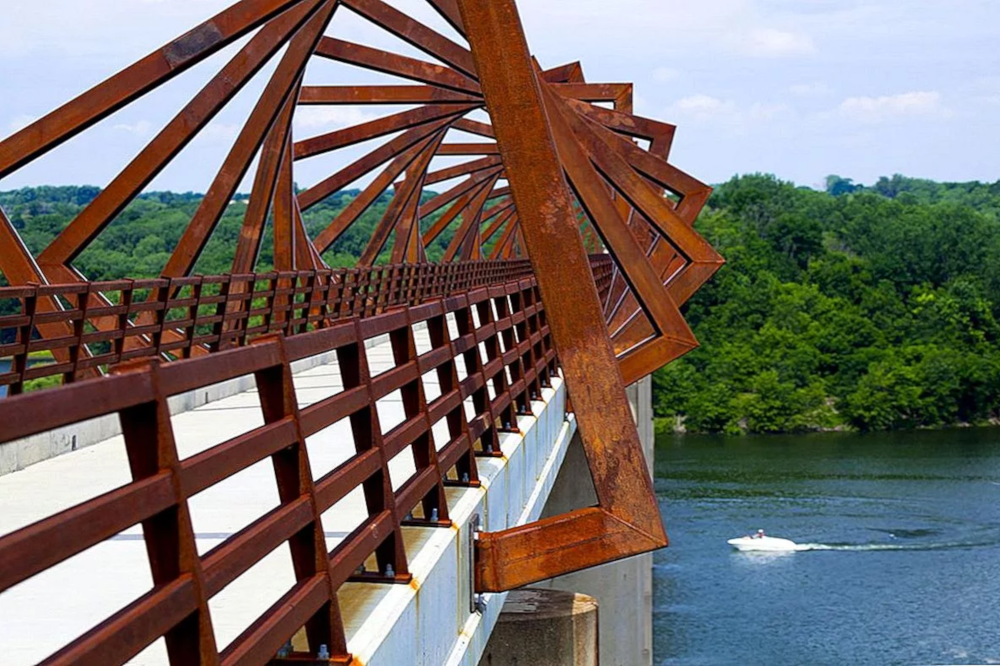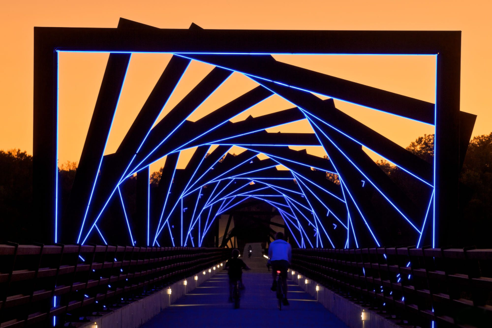 Это футуристическое строение — дань памяти итальянским иммигрантам, которые некогда трудились в местных шахтах. Огромные металлические рамки на мосту напоминают многочисленные ворота шахты. Мост пользуется популярностью у любителей пеших, конных и велосипедных прогулок.