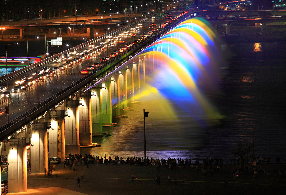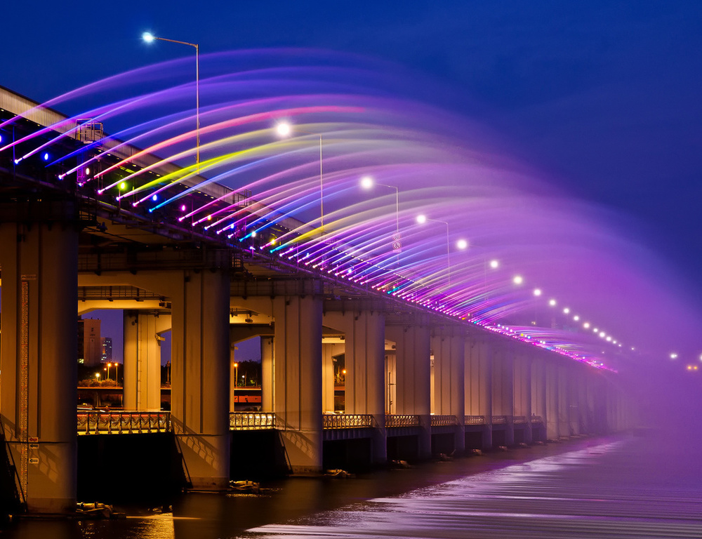 Это творение азиатских архитекторов привлекает внимание необычным дизайном. С двух сторон моста расположен самый длинный в мире поющий фонтан длиной 1140 м. Струи, освещённые цветными светодиодами, меняются и двигаются, исполняя завораживающий танец.