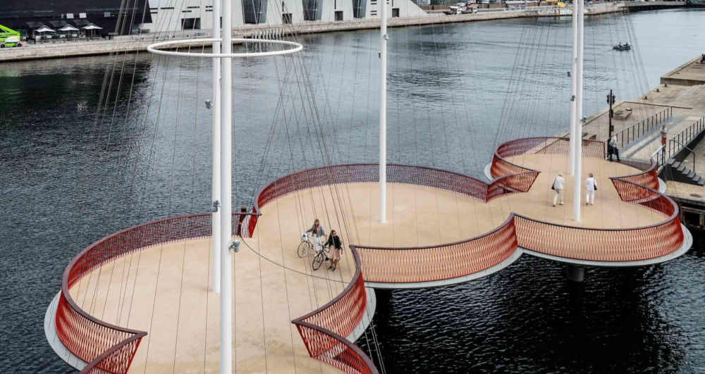 Круглый мост состоит из пяти круглых «палуб» общим весом 210 т. Палубы образуют зигзагообразный мост длиной 40 м. Под мостом могут проплывать небольшие лодки высотой до 2,2 м. Центральная секция моста может отодвигаться и пропускать большие яхты и катера.