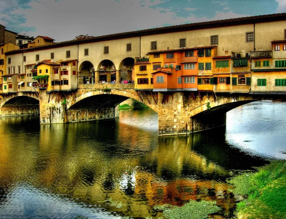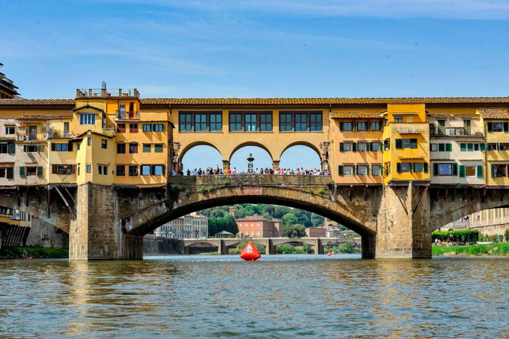 Понте Веккьо — один из самых атмосферных мостов в мире. Вся его поверхность застроена домами, магазинами и сувенирными лавками. В центре строения есть открытая площадка, с которой можно любоваться окрестностями и рекой. Мост построен в 1345 году.