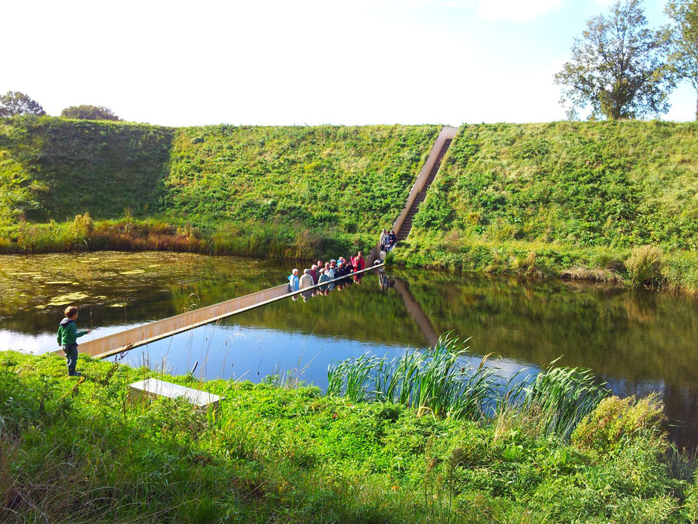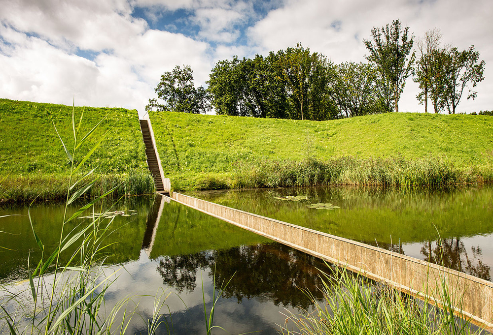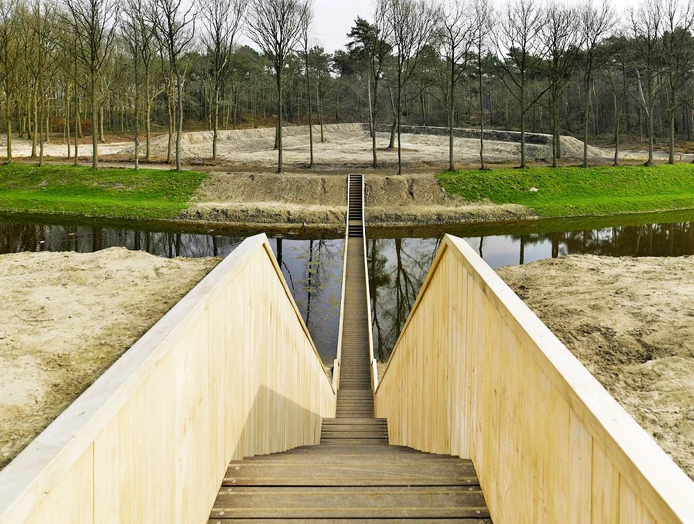 Этот мост напоминает траншею, проложенную по дну озера. Идея создания такого сооружения была навеяна библейскими сказаниями о пророке Моисее, который заставил воды Красного моря расступиться перед евреями, бежавшими из Египта. Необычный мост гармонично вписывается в окружающий пейзаж.