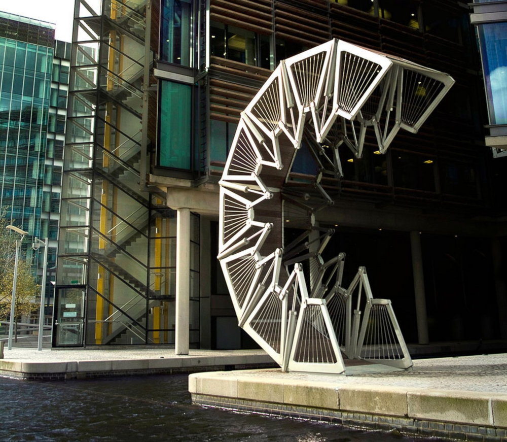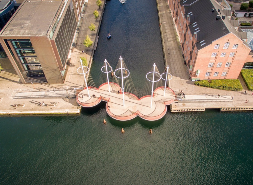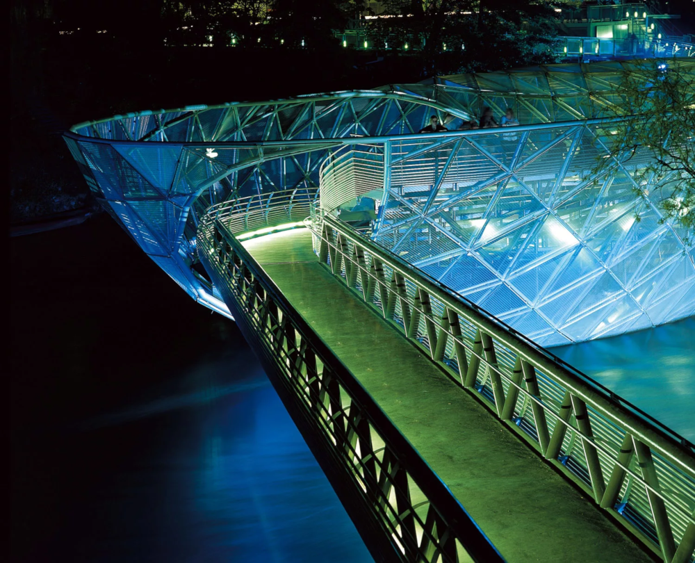Этот уникальный мост с гидравлическими насосами, встроенными в перила, может складываться в восьмиугольник, освобождая канал для движения лодок. В свёрнутом положении напоминает мельничное колесо. Не имеет аналогов в мире.