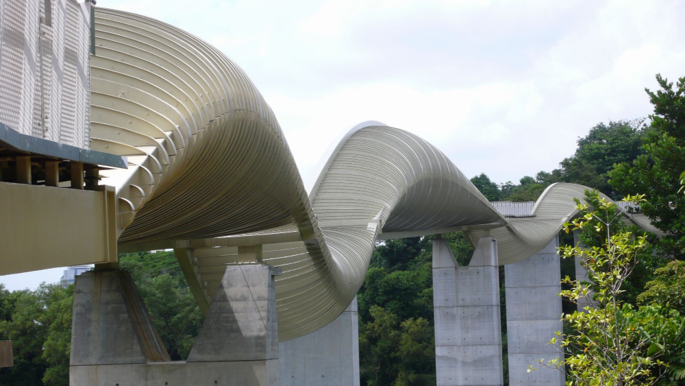 Пешеходный мост «Волны Хендерсона» напоминает удава, обвившего ветку своим длинным гибким телом. В нишах, сформированных изгибами моста, установлены лавочки, на которых можно посидеть и полюбоваться изумительными видами.