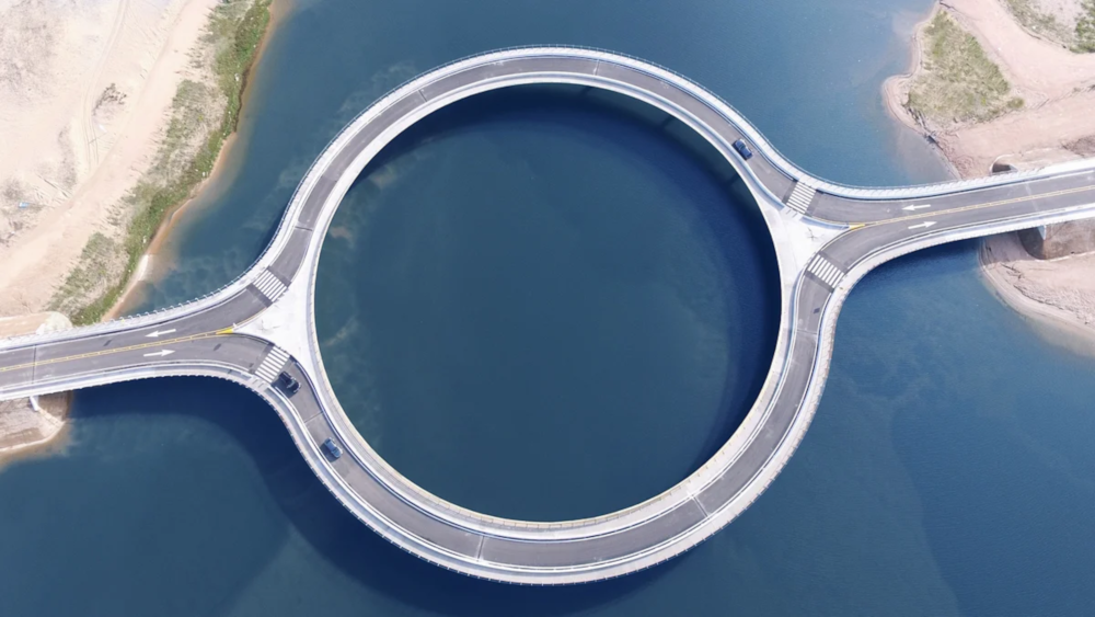 Мост Round Bridge имеет кольцеобразную конструкцию. По замыслу его архитектора Рафаеля Виньйоли, движение по кругу заставит водителей снизить скорость авто, а заодно подольше наслаждаться великолепными пейзажами.