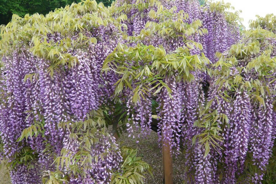 Вистерия — это вьющееся древовидное субтропическое растение, которому для роста необходима опора. Оно может оплести другое дерево, беседку, стену дома или специально построенный для него металлический каркас.
