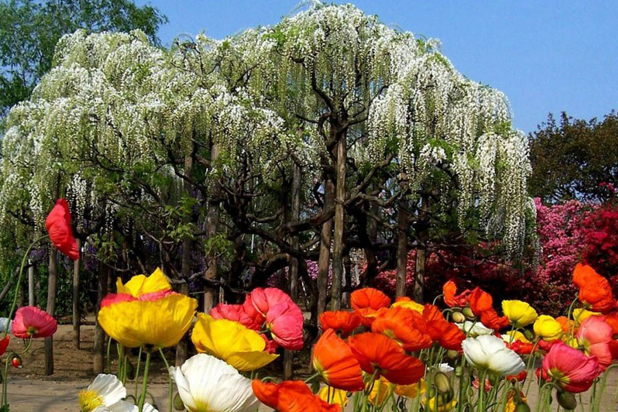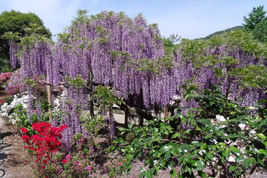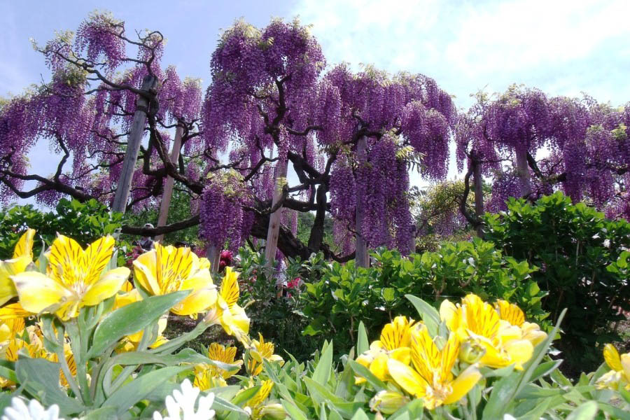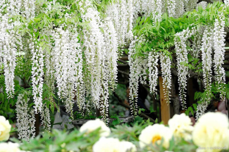 Посетителям особенно нравится 80-метровый тоннель из белоснежных глициний. За невероятные ощущения, которые дарит прогулка по такому тоннелю, его называют «дорогой счастья».