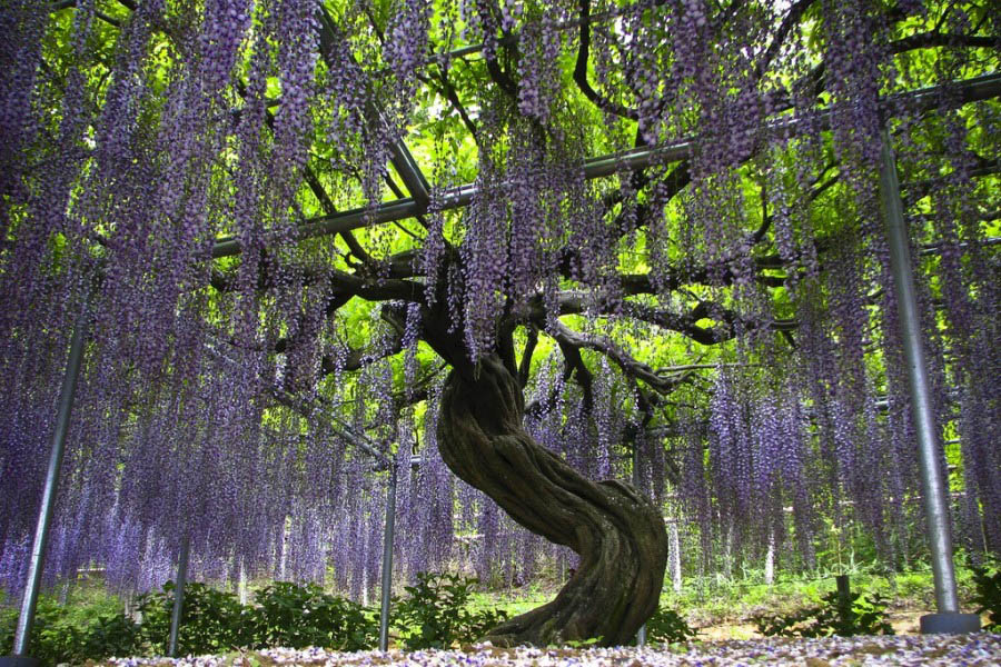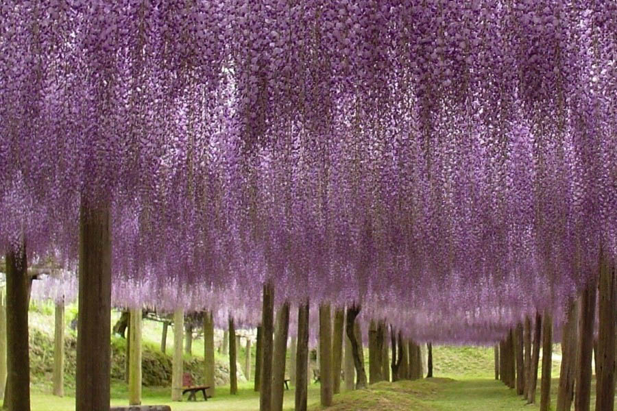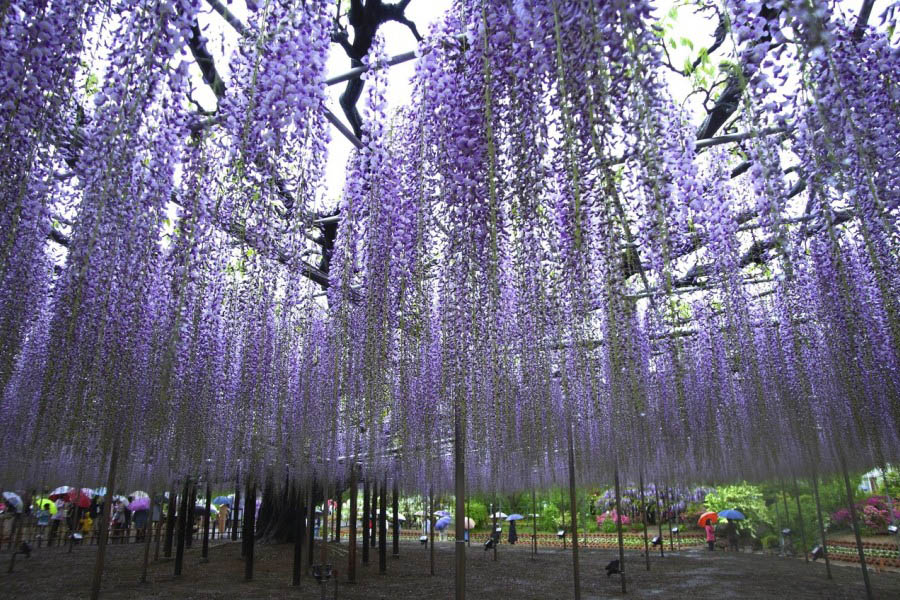 Нереально красивые водопады цветущих глициний в Стране восходящего солнца
