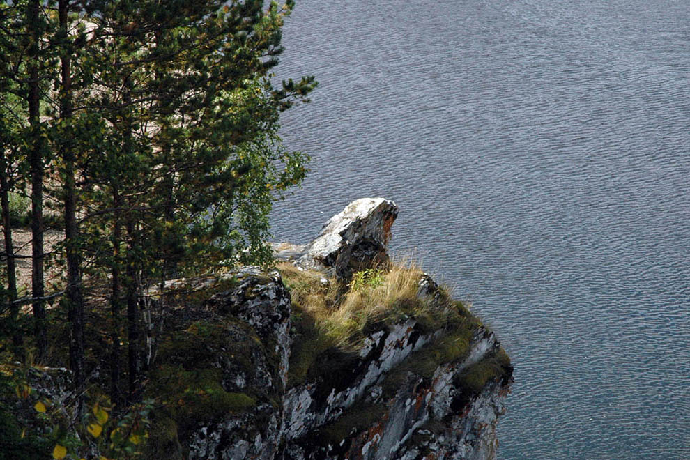 Далее маршрут идет по скале Светлая, на которой оборудована обзорная площадка с потрясающим видом на устье реки Серга. В народе скала больше известна под названием «Утопленник». В 1978 году здесь погибли два студента, которые сплавлялись по реке. Чтобы избавиться от мрачных ассоциаций, администрация парка переименовала достопримечательность.
