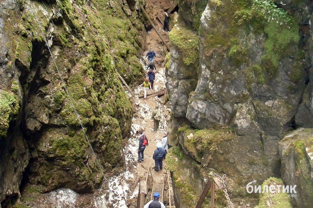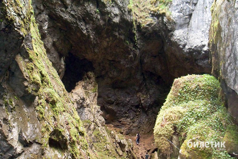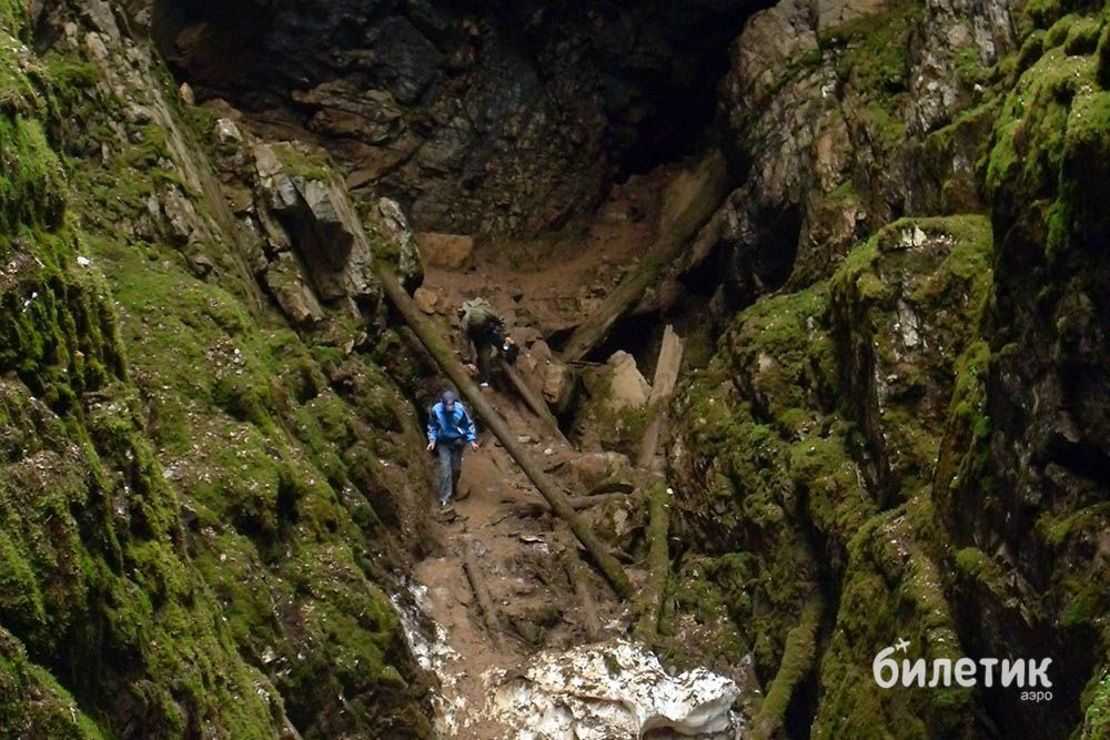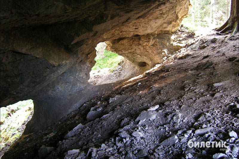 Из центра обвала отходят три пещеры, в которых встречаются реликвии ледникового периода.