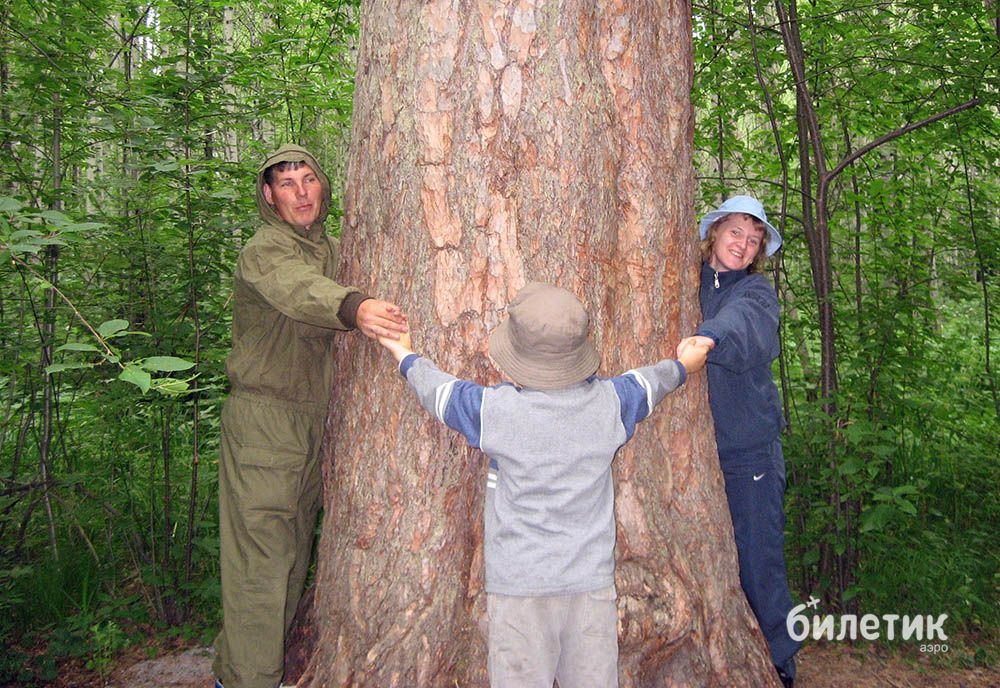 Реликтовая сосна, которую можно обхватить только вчетвером.