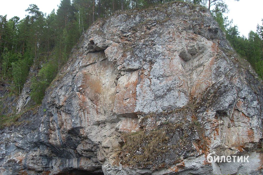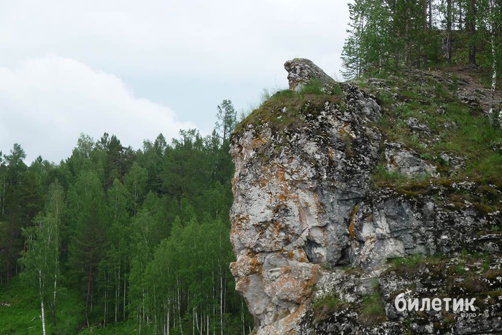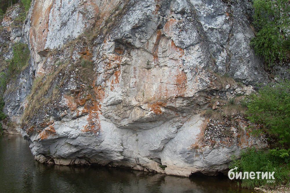 Следующая точка на нашем пути — скала Лягушка. Она небольшая, всего 15 метров. Внизу от глаз туристов спрятаны гроты, попасть в них можно только со стороны реки. В одном из них был найден наконечник стрелы эпохи Средневековья. На этой тропе можно увидеть лишь небольшой выступ, который как раз напоминает лягушку.