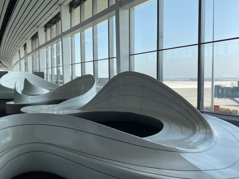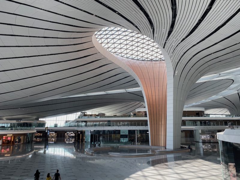 План аэропорта разрабатывали архитекторы из Нидерландов. Здание терминала было спроектировано британскими архитекторами Zaha Hadid Architects и французскими проектировщиками ADPI. Аэропорт Дасин впечатляет всех авиапутешественников. И Сэм Чуй не исключение — по мнению мужчины, аэровокзал является одним из самых красивых зданий, которые он когда-либо посещал (а попутешествовать ему пришлось немало). Прогуляемся по терминалу.В зоне отдыха оборудовано много мест, где можно перевести дух и немного расслабиться, есть даже рабочие столы с USB-портами (что точно оценят бизнесмены и деловые путешественники) и детская площадка. Сейчас в аэропорту работают несколько залов ожидания, каждый из которых имеет открытый дворик — на свежем воздухе можно, например, полюбоваться зеленью и насладиться солнцем в тёплую погоду.