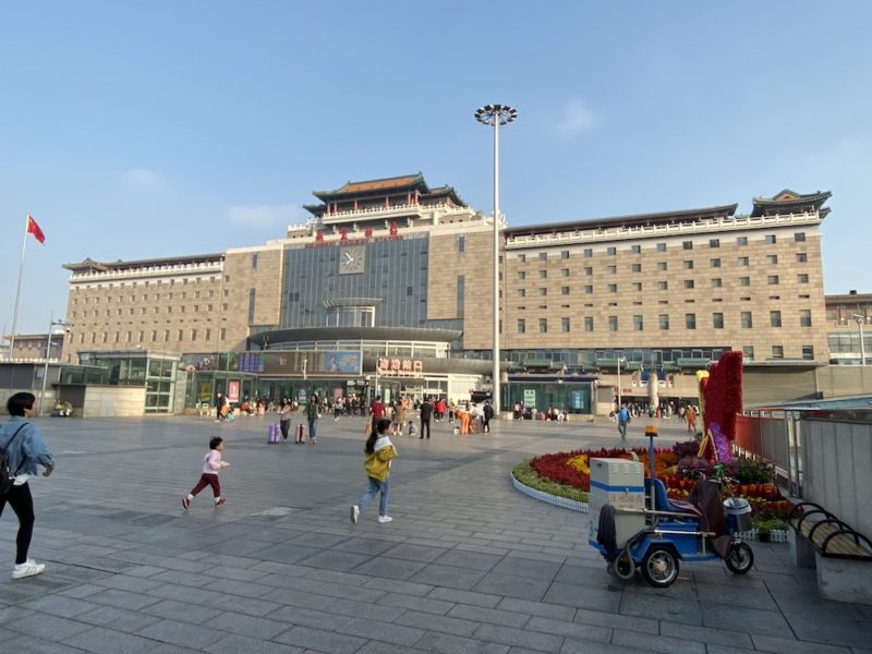Западный вокзал Пекина считается самой большой железнодорожной станцией в Азии — за день здесь обслуживают до 400 000 человек. Для авиапутешественников, направляющихся в аэропорт Дасин, оборудован специальный вход. Билетные центры расположены по обе стороны от входа. Все поезда, обслуживающие маршрут Пекин — Дасин, отправляются из зала ожидания № 10 (пассажиры бизнес-класса могут воспользоваться залом ожидания № 12).