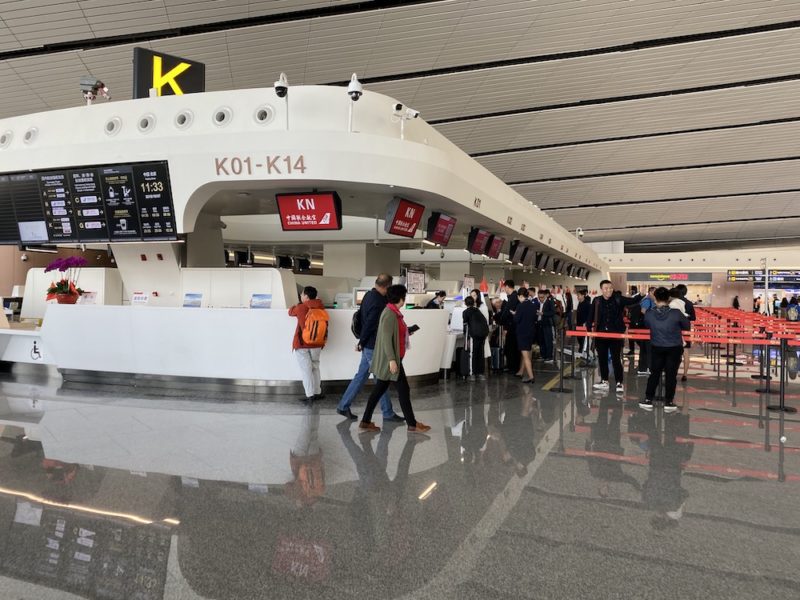 Для внутренних рейсов стойки регистрации в аэропорту Дасин расположены на всех трёх уровнях вылета — 4F, 3F, B1 (даже под землей). На этаже B1 можно зарегистрироваться прямо в метро или на железнодорожной станции. На третьем этаже есть зоны регистрации для пассажиров премиум-класса. Зал для клиентов авиакомпании China Southern расположен в западной стороне, для путешественников China Eastern — в восточной стороне авиагавани. На четвертом этаже также есть стойки регистрации для рейсов — их начнут использовать, когда начнутся международные полёты.