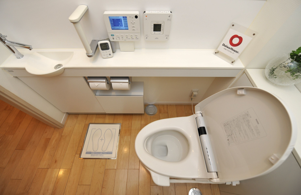 Японцы умудрились напичкать унитаз добрым десятком кнопок. Зато, как только вы перешагнёте порог уборной, крышка унитаза откроется, зазвучит фоновая музыка, заглушающая звуки физиологических процессов, сиденье начнёт подогреваться, а когда вы справите нужду, унитаз подмоет вас тёплой водой и тщательно высушит феном. Продвинутые версии домашних унитазов проведут экспресс-анализ вашей мочи, измерят давление и отправят результаты обследования лечащему врачу.