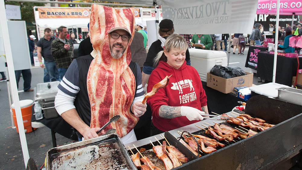 Фестиваль, который противопоказан для посещения вегетарианцам. Все блюда здесь приготовлены из калифорнийской свинины в виде бекона. Фантазия местных поваров может удивить самых искушённых гурманов, здесь продают даже мороженое из бекона! Сопровождается дегустация традиционными американскими забавами: поросячьими бегами, конкурсом костюмов и поеданием бекона на скорость.