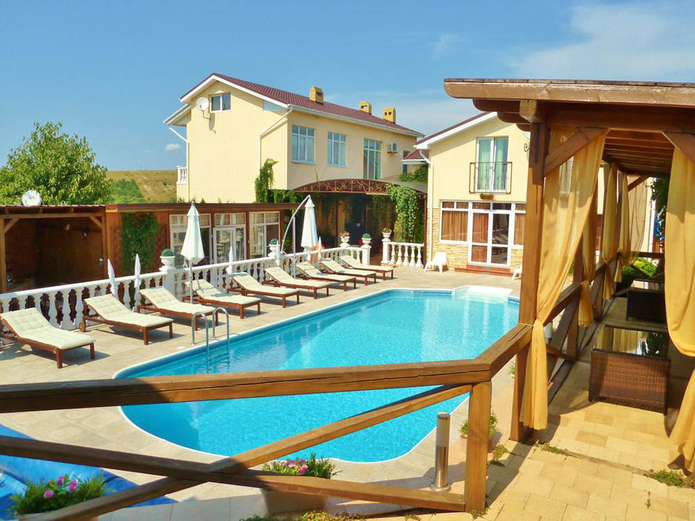 К услугам отдыхающих 2-х, 3-х и 4-местные номера с полным набором мебели, ортопедическими матрасами и другими удобствами. Заслуживает внимания сервис и большой ассортимент развлечений, включая шикарный бассейн с зоной отдыха, мангал, теннисный корт и много других полезностей. Здесь созданы идеальные условия для пляжного отдыха, а дойти до моря можно всего за 15 минут.
