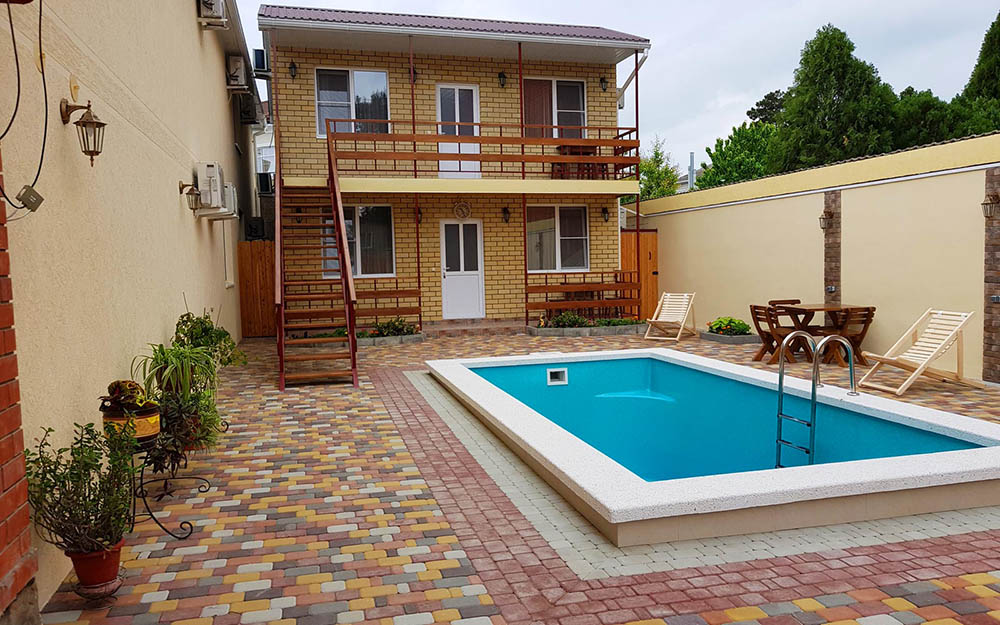 Все номера оборудованы современными кондиционерами, поэтому здесь комфортно при любой погоде. Стоимость зависит от количества проживающих и ассортимента предлагаемых услуг. На территории гостевого комплекса оборудованы мангалы и столики для отдыха под аркой из винограда. К услугам любителей водных процедур бассейн с подогревом и детским отделением.