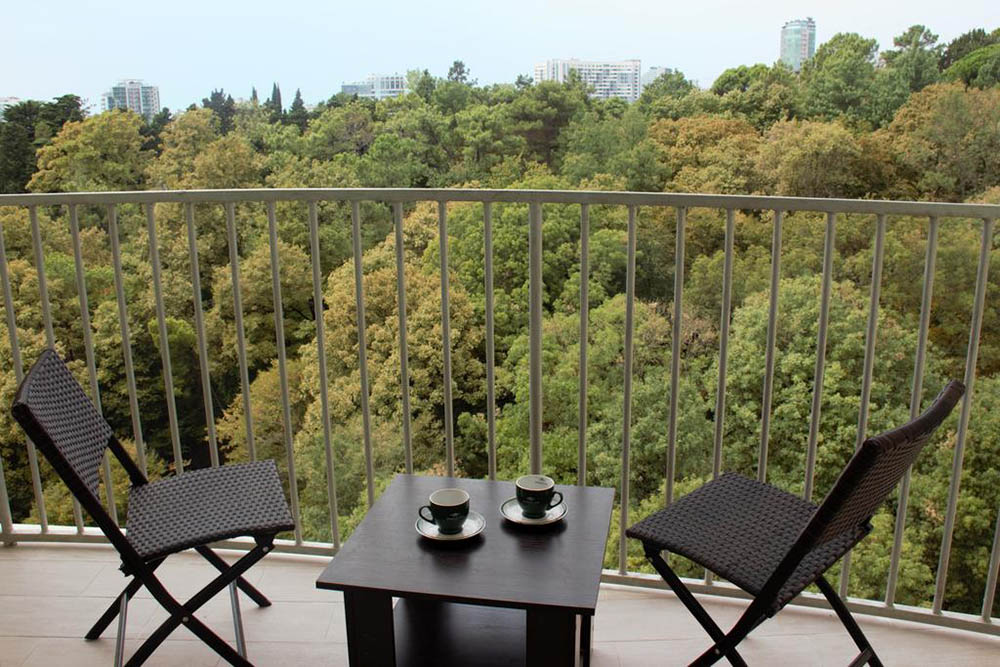 Апартаменты с нескольких сторон окружил знаменитый ботанический сад — от просп. Курортного и Пушкина до ул. Фабрициуса и Депутатской. Сочинский цирк, Летний, Зимний и Зеленый театры находятся в пешей доступности. До парка «Ривьера» — 4 км. В распоряжении заказчиков балкон, гостиная, спальня, столовая, оборудованный по евростандартам санузел с феном и гигиеническими принадлежностями. Имеется телевизор с экраном на жидких кристаллах.