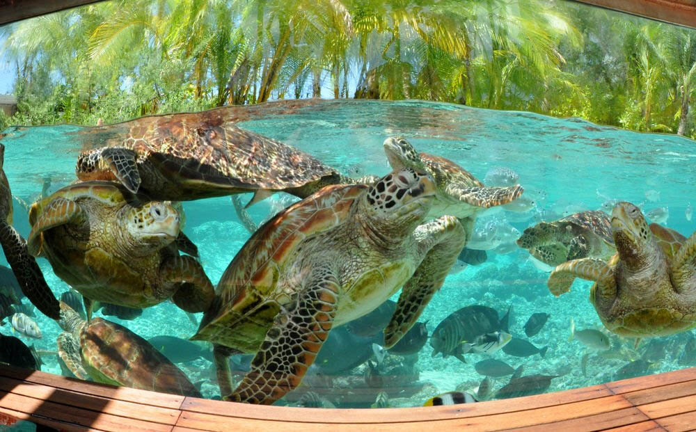Отель Le Méridien расположен во Французской Полинезии с видом на лагуну Бора-Бора. На его территории находится центр охраны морских черепах. Гости отеля могут не только смотреть на животных, но и кормить их.