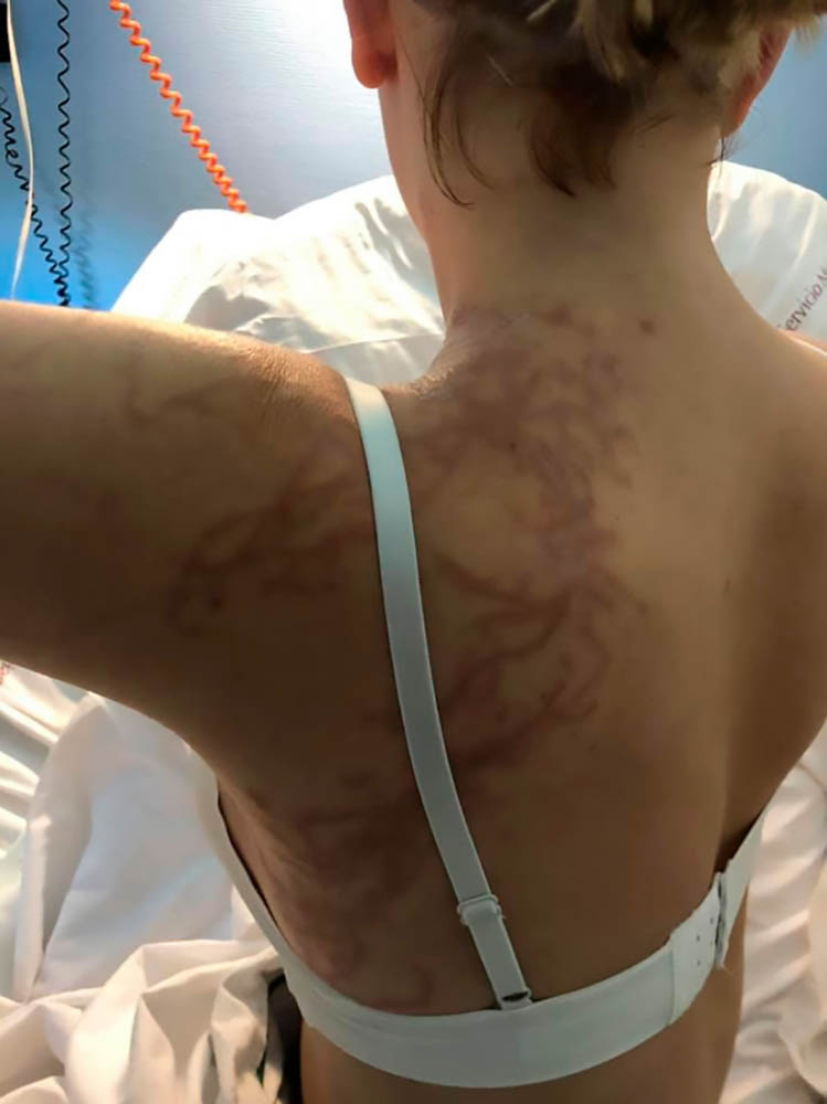 Щупальца медузы оставляют на коже длинные тонкие ожоги