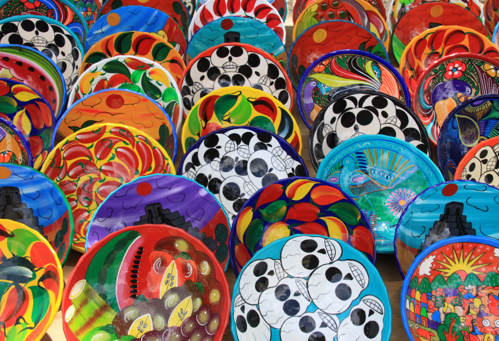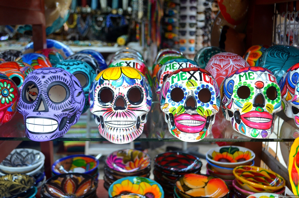 Главный праздник Мексики — День мёртвых, поэтому одним из самых колоритных мексиканских сувениров являются глиняные черепа, щедро украшенные национальными узорами и яркими цветами. В сувенирных лавках можно купить сомбреро из соломы или бархата с богатым декором, шерстяные пончо с уникальными традиционными узорами. Здесь же представлены сувениры, изготовленные из твёрдого вулканического стекла — обсидиана. Любители экзотики по достоинству оценят сумки, ремни, обувь и прочие изделия из кожи страусов, аллигаторов, питонов и прочих экзотических животных. Гурманов можно порадовать текилой, сладостями, острыми соусам или кофе.