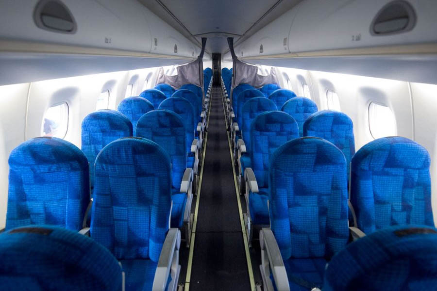 На уборку салона между рейсами у бортового персонала остаётся не так много времени, как хотелось бы, поэтому авиакомпании перетягивают сиденья своих самолётов практичной тёмно-синей тканью, на которой незаметны загрязнения и потёртости. Такая ткань легко выдерживает большой пассажиропоток и авиакомпаниям не приходится часто менять обивку. Кроме того, с технической точки зрения почистить тёмно-синие кресла проще, чем светлые, а замытые пятна и прочие дефекты на них практически не заметны.