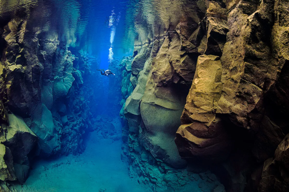 В Исландии, на территории национального парка «Тингведлир», находится уникальное озеро Сильфра. Уникальность данного природного объекта заключается в том, что на его дне находится место разлома евразийской и североамериканской тектонических плит. Так что во время погружения дайверы могут поплавать между Евразией и Северной Америкой и даже одновременно дотронуться до них руками. Из-за поразительно прозрачной талой воды, которая наполняет озеро, у дайверов притупляется чувство глубины и пространства, подводный мир становится похожим на виртуальную реальность.