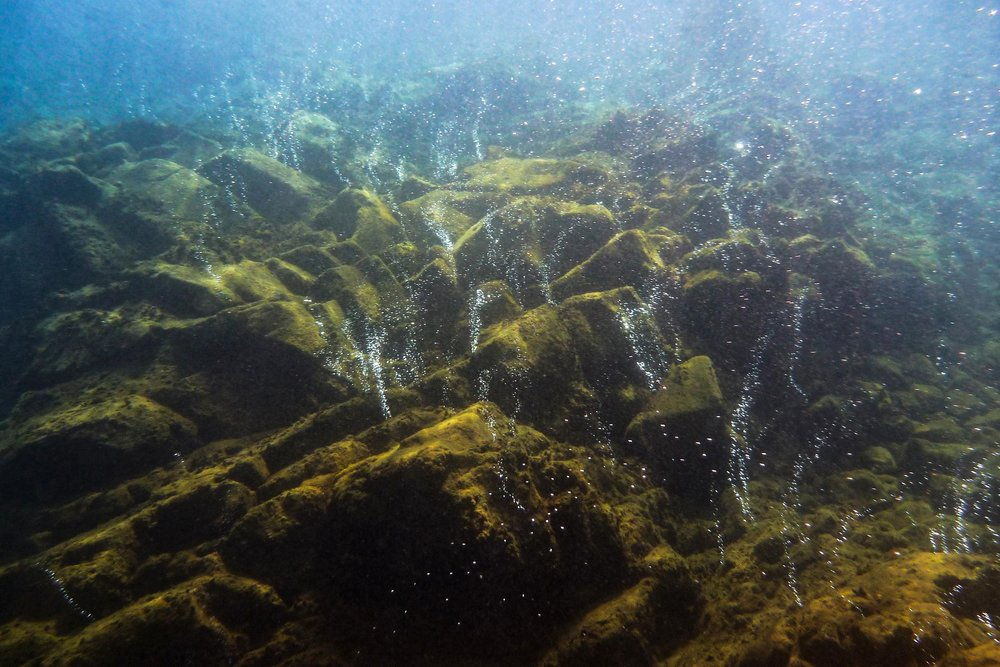 В Индонезии дайверы могут поплавать рядом с настоящим вулканом Бануа Вуху, не опасаясь при этом извержения кипящей лавы и ядовитых газов. Вместо этого из вулкана струятся серебристые ленточки пузырьков — реакция, связанная с зарождением серы где-то глубоко-глубоко под землёй. Огромное тело вулкана имеет высоту 400 м, а верхняя точка находится на глубине 5 м под водой. Чем глубже погружаются дайверы, исследуя стенки вулкана, тем больше ярких кораллов и удивительных морских обитателей встречается на их пути.