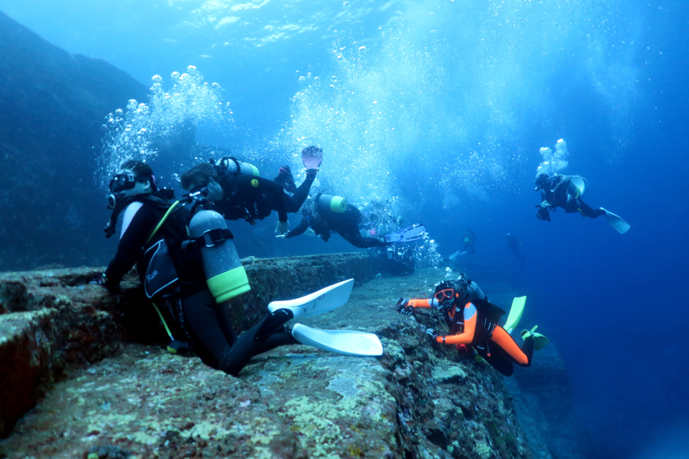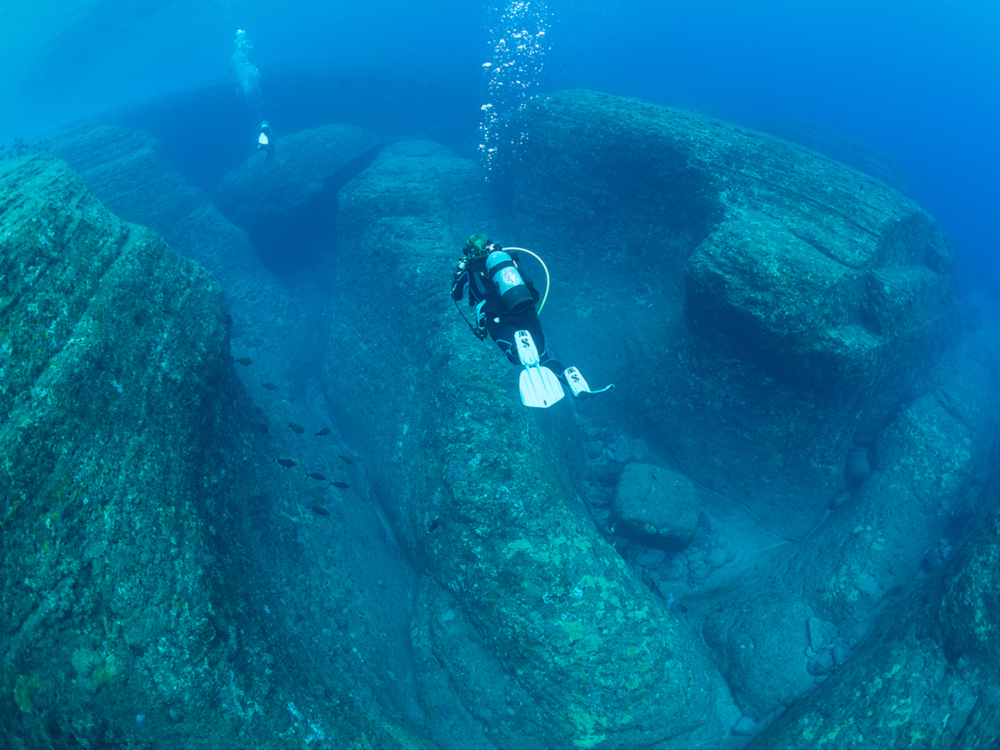 Ещё один уникальный спот для дайвинга расположен в архипелаге Окинава, недалеко от острова Йонагуни. Здесь в конце ХХ века был обнаружен древний монумент, возраст которого составляет 10-16 тыс. лет. Объект находится на глубине от 5 до 40 м и представляет собой совокупность каменных платформ, лестниц и колонн исполинского размера (до 43 м в высоту). Учёные долгое время спорят о происхождении монумента, одни считают его природным объектом, другие рукотворным. Как бы то ни было, дайверы уже давно отнесли монумент Йонагуни к категории самых необычных и интересных мест для погружения с аквалангом.