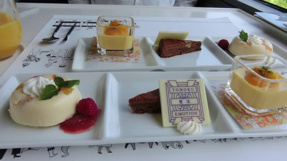 По Японии курсирует сразу несколько гастрономических поездов, пассажиры которых могут не только насладиться красивыми видами, но и отведать местные деликатесы. Компания Shikoku Railway предлагает пассажирам прокатиться по побережью префектуры Эхиме и попробовать традиционные местные блюда, такие как жареная свинина с красными водорослями и салат из сезонных овощей. В поезде Tango Kuromatsu, на маршруте Киото — Кобе, подают стейки из киотской говядины с овощами гриль. В поезде Rokumon от компании Shinano Railway пассажиры дегустируют местные вина и ветчину. Самыми изысканными гастрономическими маршрутами считаются Isumi Railway, в котором подают свежайшие суши и сашими, и Tohoku Emotion с невероятной подборкой блюд из морепродуктов.