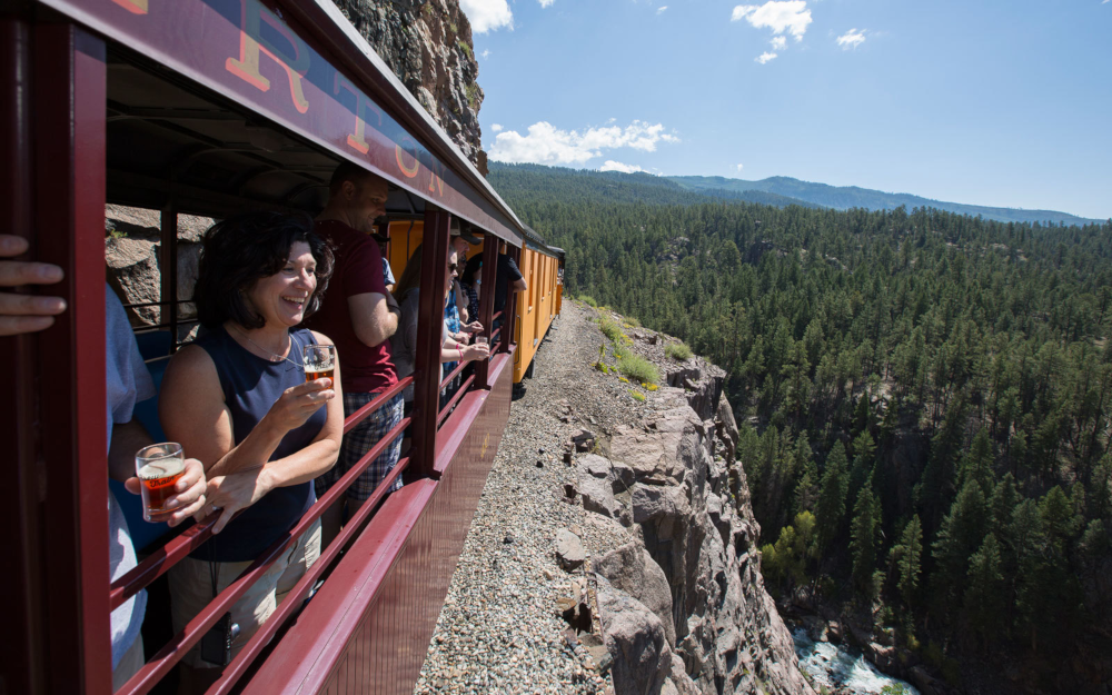 Если вы любите природу и пенные напитки, то гастрономический ретро-поезд Durango & Silverton — это то, что вам нужно. В поезде есть два типа вагонов: открытые (обзорные) и закрытые со сводчатыми потолками и четырёхместными столиками. Поезд отправляется из Дуранго, штат Колорадо, и везёт пассажиров вдоль реки Анимус по узкоколейной железной дороге в Каскад Каньон. Во время поездки пассажирам подают закуски и несколько сортов пива, сваренного местными пивоварнями. По прибытии в Каскад Каньон для пассажиров проводится зажигательная вечеринка под открытым небом с фуршетом, пивом и живой музыкой. В общей сложности это небольшое приключение продолжается 5 часов.